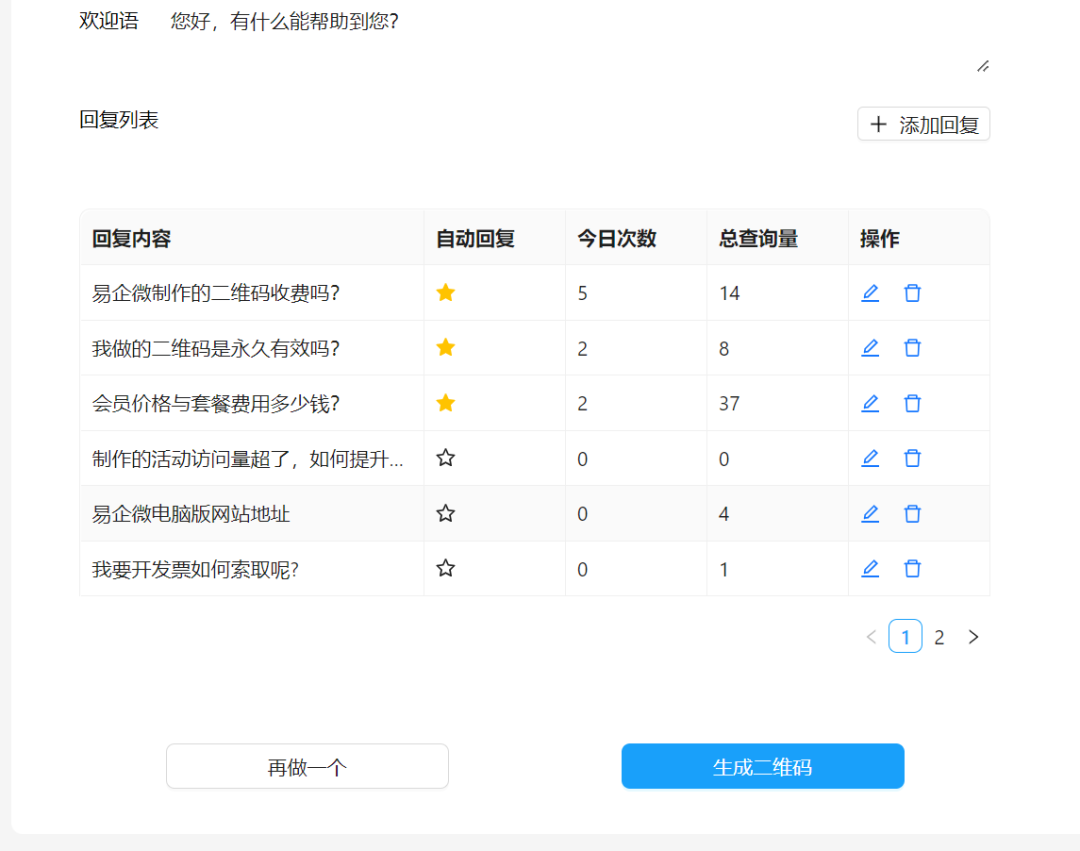 不过,最近有点头大的是客服咨询量逐渐增多,开始应付不过来了。然而,其中80%都是重复的问题。比如,易企微生成的二维码是永久的吗?易企微是免费的吗?易企微怎么收费?等等。