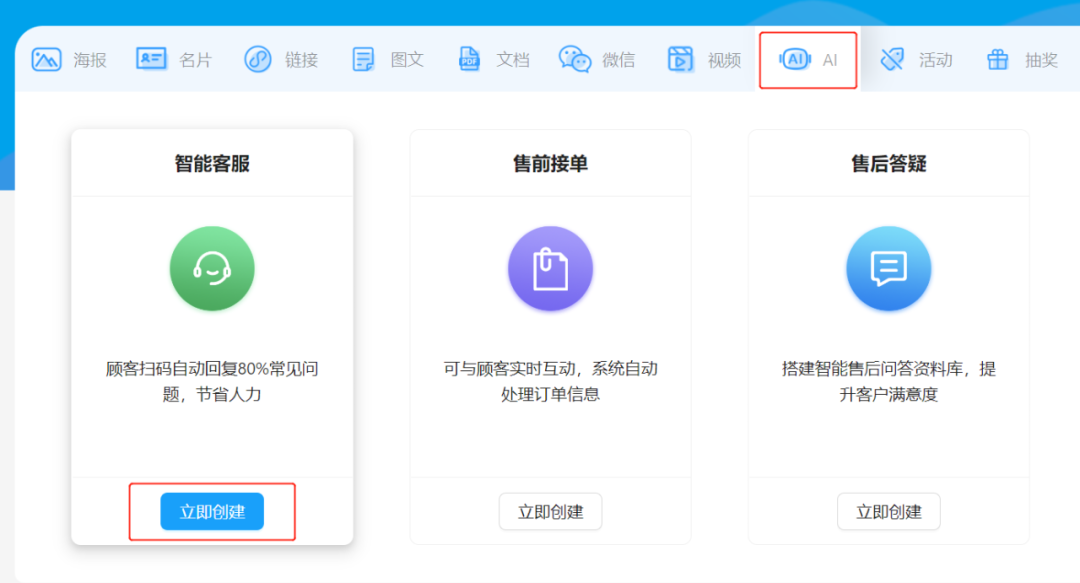 1. 登录易企微电脑版即可使用:E7wei.com 点“AI”功能,选“智能客服”。