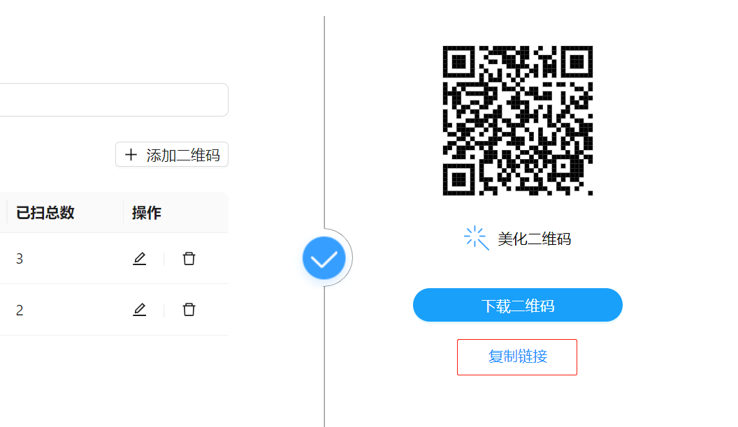 3. 然后点“生成二维码”按钮,然后点复制链接按钮,就可以将链接放在短信里使用了。