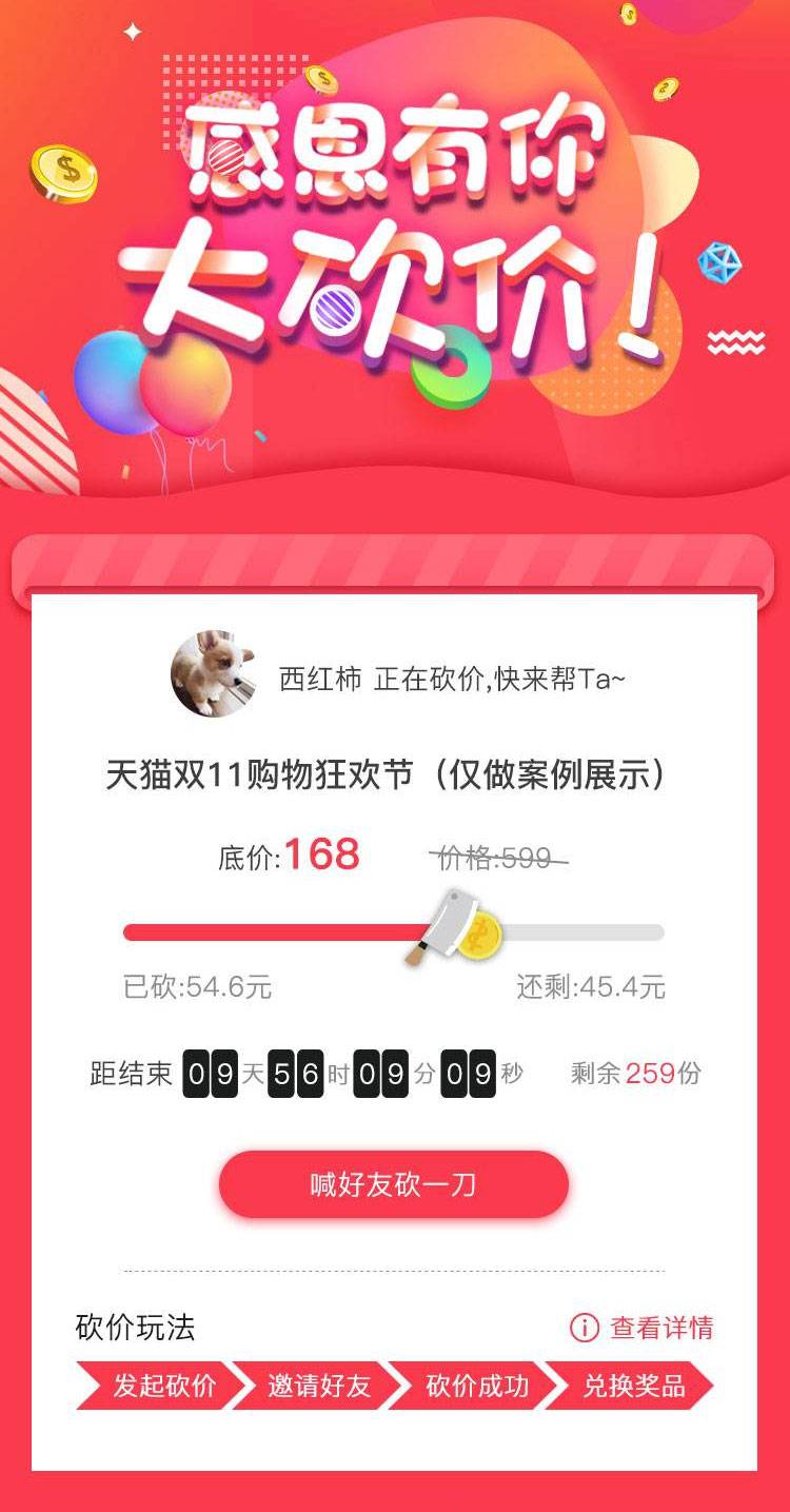 砍价是一款通过价格的敏感度,直接快速的拉动用户参与,并在后期形成转化的工具。